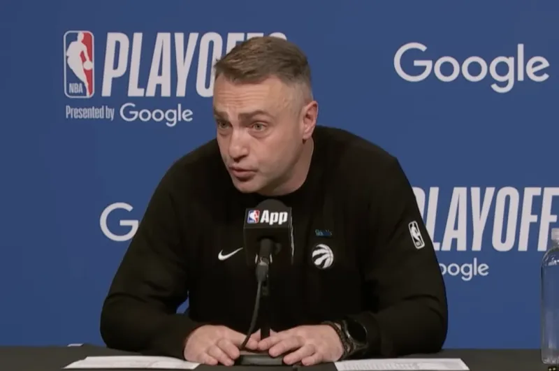 达尔科-拉贾科维奇接受了采访,当记者问及巴雷特领跑季后赛末节得分榜时,拉贾科维奇表示:“我倒没注意到这个统计。现在各种数据太多了,比如“周二晚上穿黄球鞋表现最好的球员”。我肉眼能看到的是他有多在乎这支球队,他多么渴望为这座城市、为加拿大赢下比赛。只要是为了赢球,他随时能提升自己的强度。我很欣慰他在第四节做得这么好,因为我们确实需要他。”