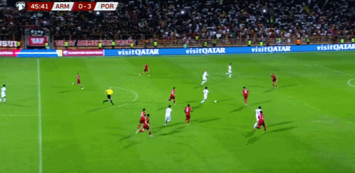 易边再战,第46分钟,葡萄牙进攻被亚美尼亚挡出,C罗停球后直接在禁区外轰出远距离世界波,皮球应声落网,亚美尼亚门将毫无办法。